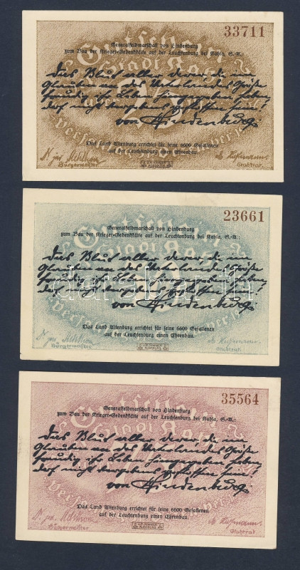 Beschreibung: Német Birodalom/Weimari Köztársaság/ Kahla 1921. 25Pf + 50Pf + 75Pf 3klf db, teljes sor T:I-