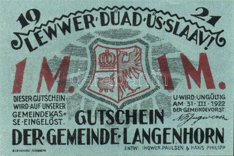 Beschreibung: Német Birodalom/Weimari Köztársaság/ Langenhorn 1921. 50Pf + 75Pf + 1M 3klf db, teljes sor T:I