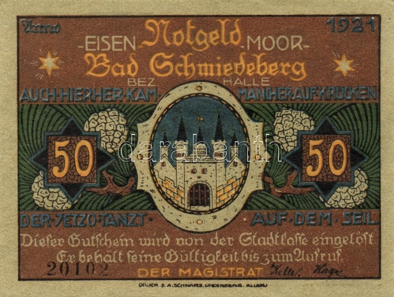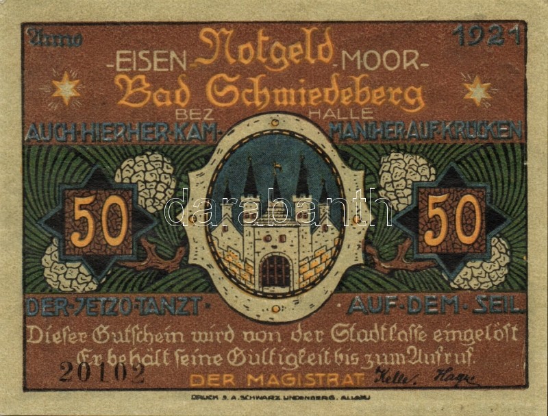Német Birodalom/Weimari Köztársaság/ Schmiedeberg 1921. 50Pf(6x) 6klf ... https://www.darabanth.com/de/93-Fernauktion/93.0/Numismatik/~5315/Nemet-BirodalomWeimari-Koztarsasag-Schmiedeberg-1921-50Pf6x-6klf-db-teljes-sor-TI~II212999