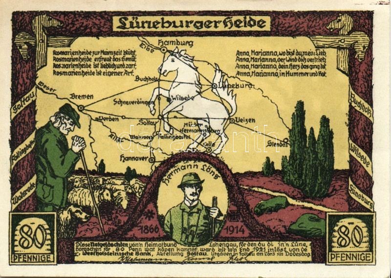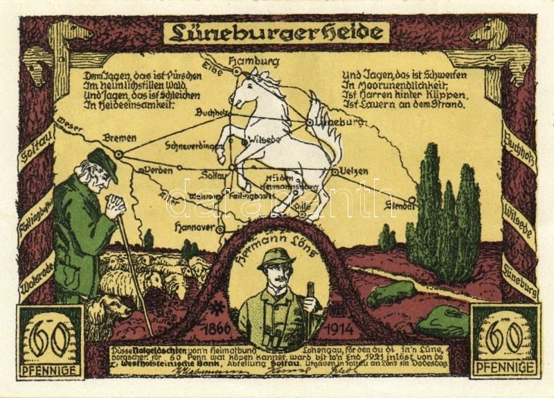 Beschreibung: Német Birodalom/Weimari Köztársaság/ Soltau D.N. 50Pf + 60Pf + 70Pf + 80Pf + 90Pf + 100Pf 6klf db, teljes sor T:I