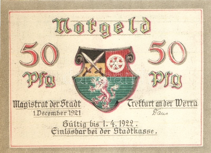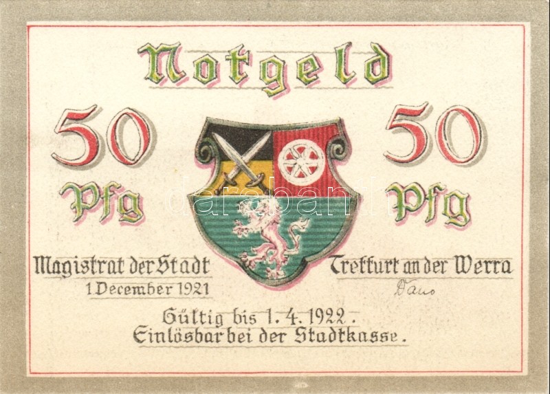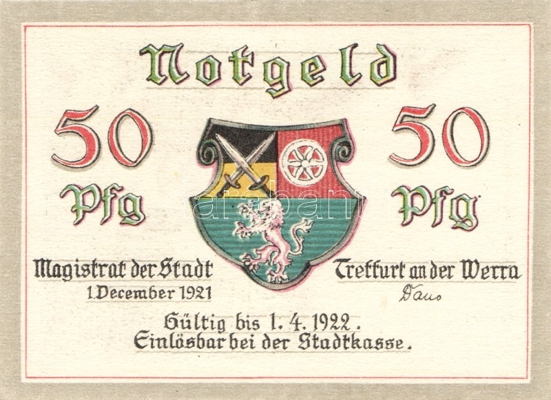 Német Birodalom/Weimari Köztársaság/ Treffurt 1921. 50Pf(6x) 6klf db, ... https://www.darabanth.com/de/93-Fernauktion/93.0/Numismatik/~5315/Nemet-BirodalomWeimari-Koztarsasag-Treffurt-1921-50Pf6x-6klf-db-teljes-sor-TI~II212996