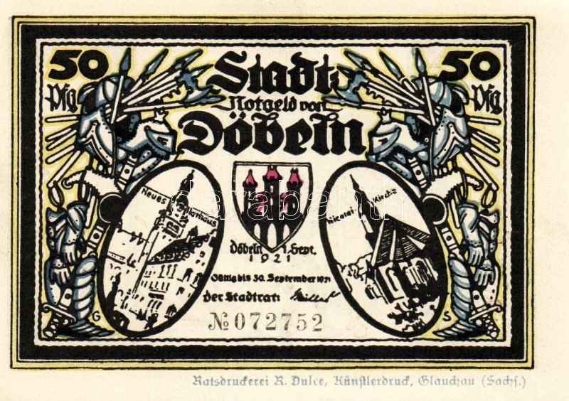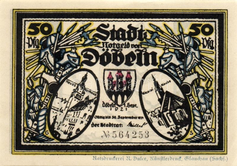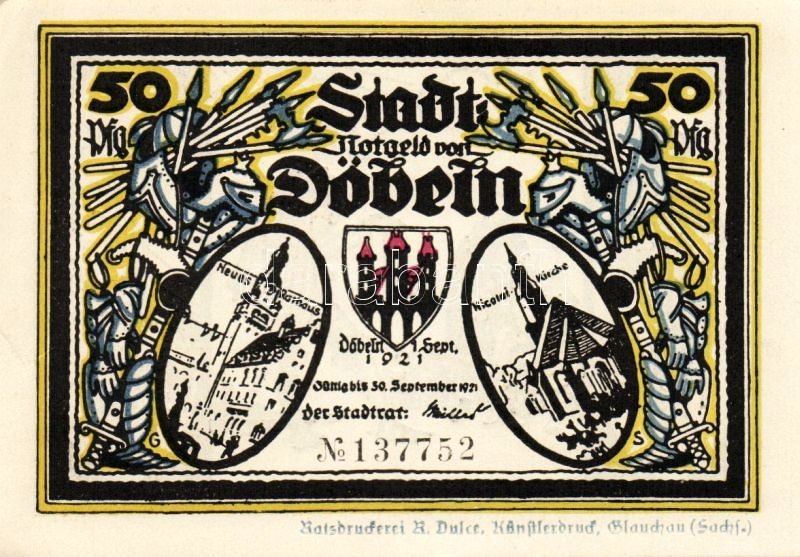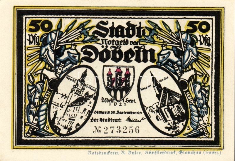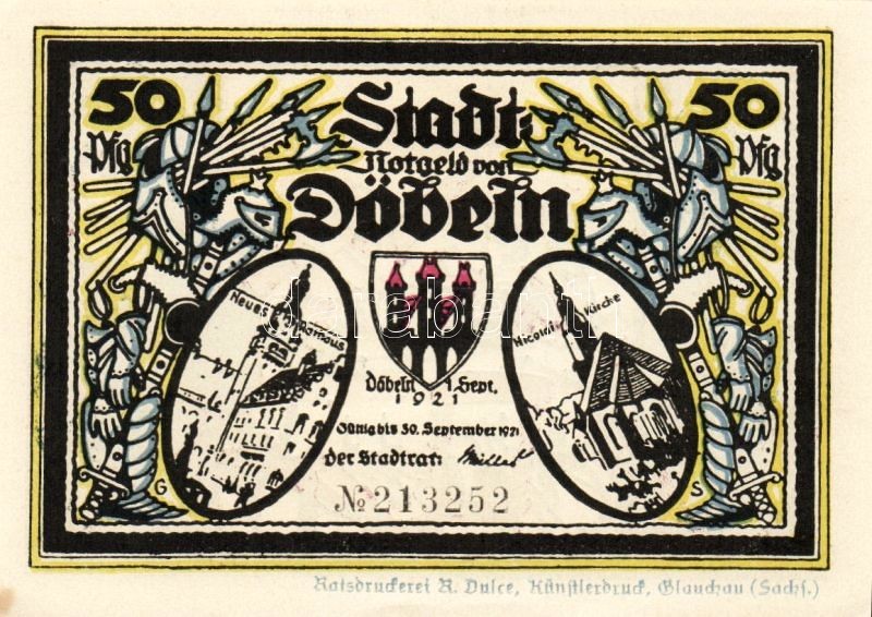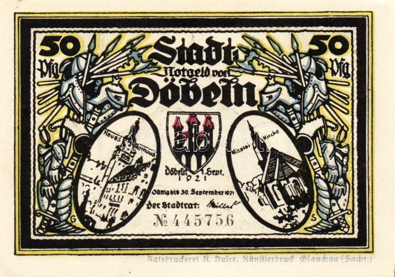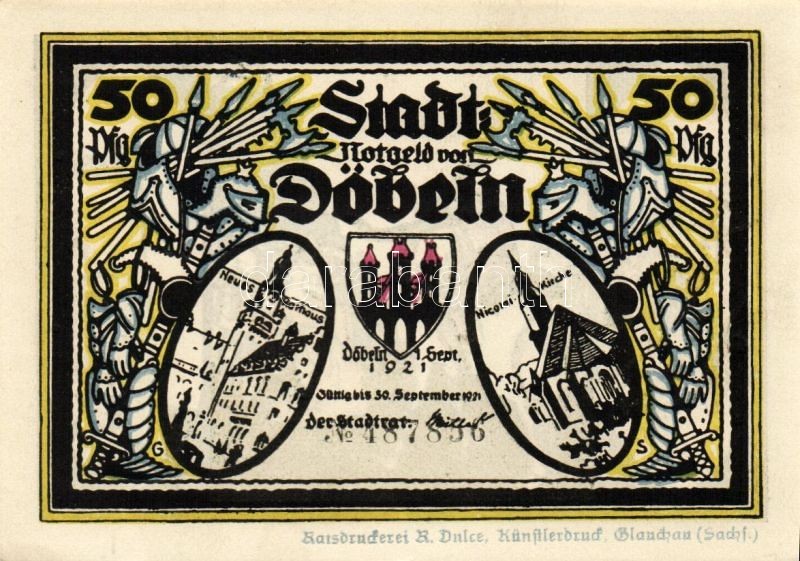 Német Birodalom/Weimari Köztársaság/Döbeln 1921. 50Pf (8x) mind klf db... https://www.darabanth.com/de/93-Fernauktion/93.0/Numismatik/~5315/Nemet-BirodalomWeimari-KoztarsasagDobeln-1921-50Pf-8x-mind-klf-db-teljes-sor-T11~II214207
