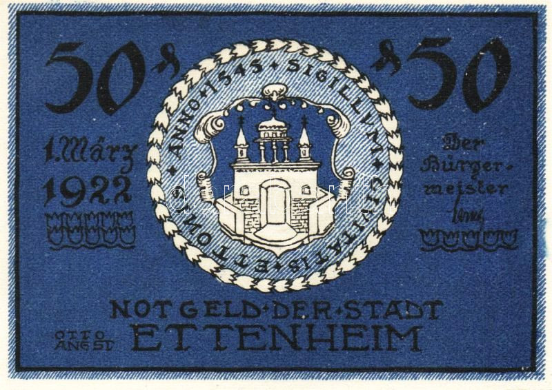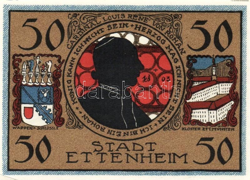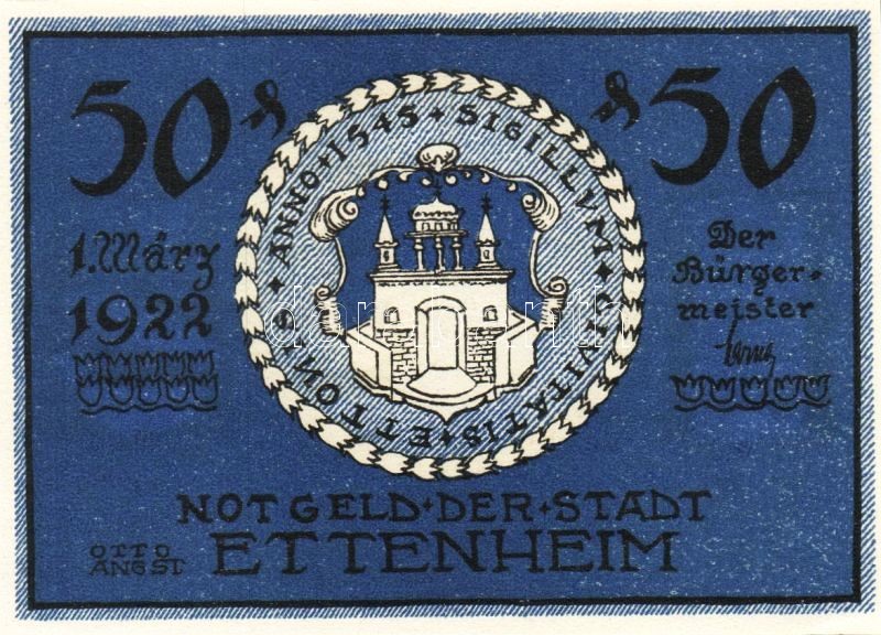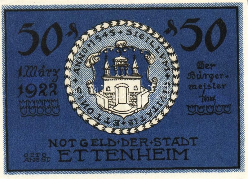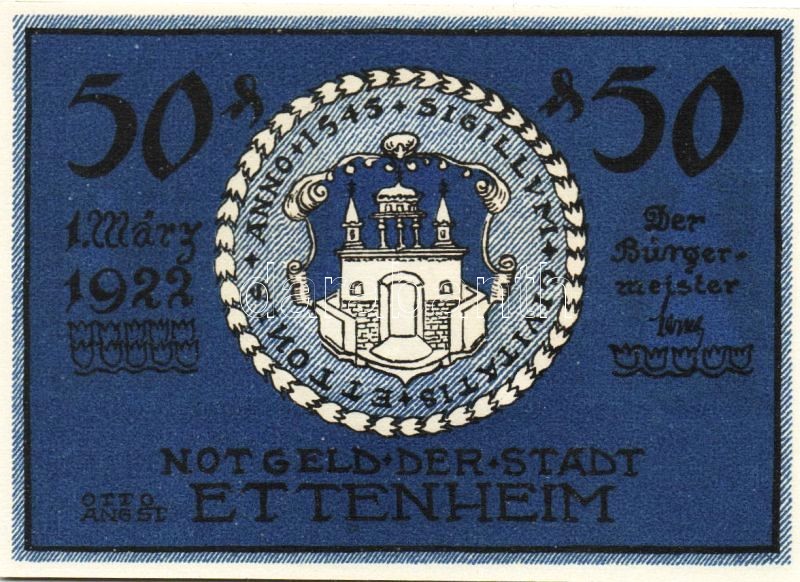 Német Birodalom/Weimari Köztársaság/Ettenheim 1922. 50Pf(6x,) mind klf... https://www.darabanth.com/de/93-Fernauktion/93.0/Numismatik/~5315/Nemet-BirodalomWeimari-KoztarsasagEttenheim-1922-50Pf6x-mind-klf-db-teljes-sor-T1~II214272
