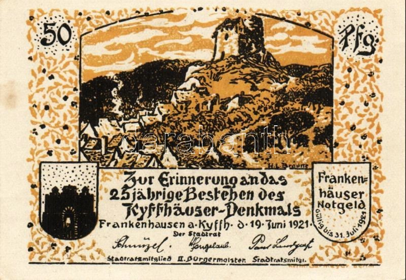 Német Birodalom/Weimari Köztársaság/Frankenhausen 1921. 50Pf(6x) mind ... https://www.darabanth.com/de/93-Fernauktion/93.0/Numismatik/~5315/Nemet-BirodalomWeimari-KoztarsasagFrankenhausen-1921-50Pf6x-mind-klf-db-teljes-sor-T11~II214216