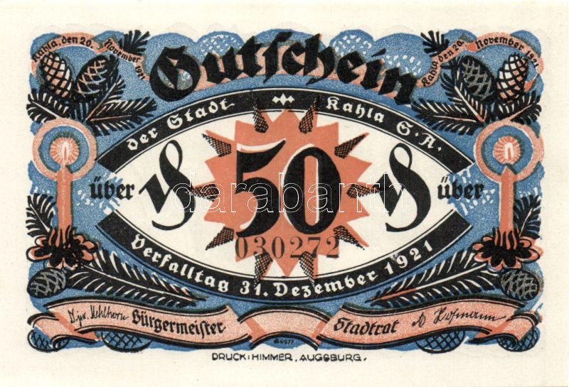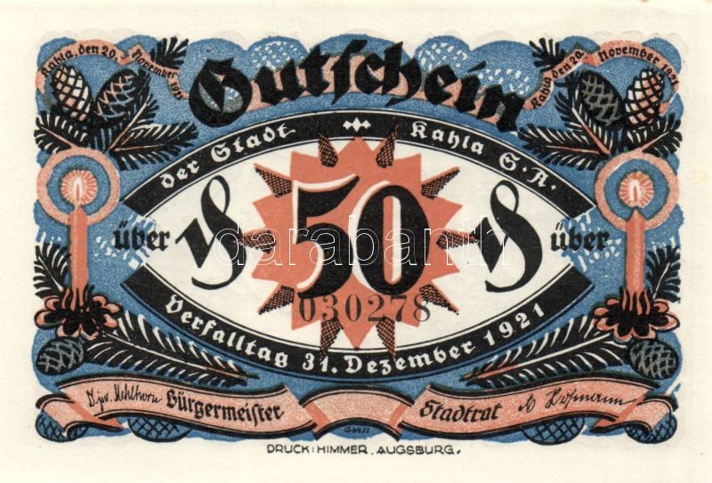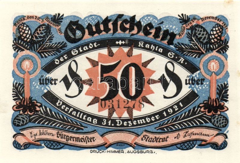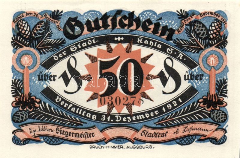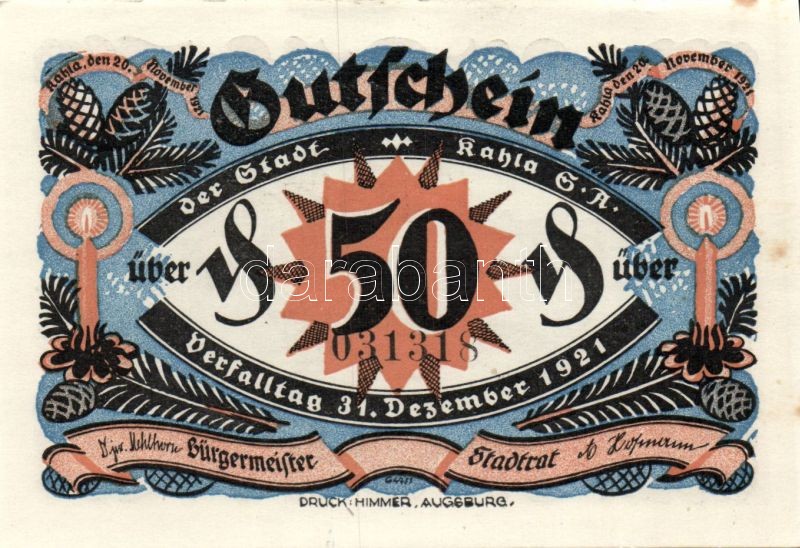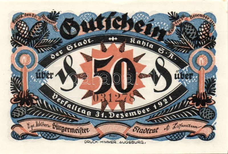 Német Birodalom/Weimari Köztársaság/Kahla 1921. 50Pf(6x) 6klf db, telj... https://www.darabanth.com/de/93-Fernauktion/93.0/Numismatik/~5315/Nemet-BirodalomWeimari-KoztarsasagKahla-1921-50Pf6x-6klf-db-teljes-sor-TI~II209439
