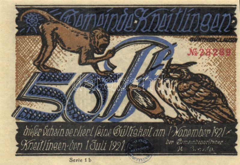 Német Birodalom/Weimari Köztársaság/Kneitlingen 1922. 50Pf(4x) + 75Pf(... https://www.darabanth.com/de/93-Fernauktion/93.0/Numismatik/~5315/Nemet-BirodalomWeimari-KoztarsasagKneitlingen-1922-50Pf4x-plus-75Pf4x-plus-1M2x-osszesen-10k~II209440