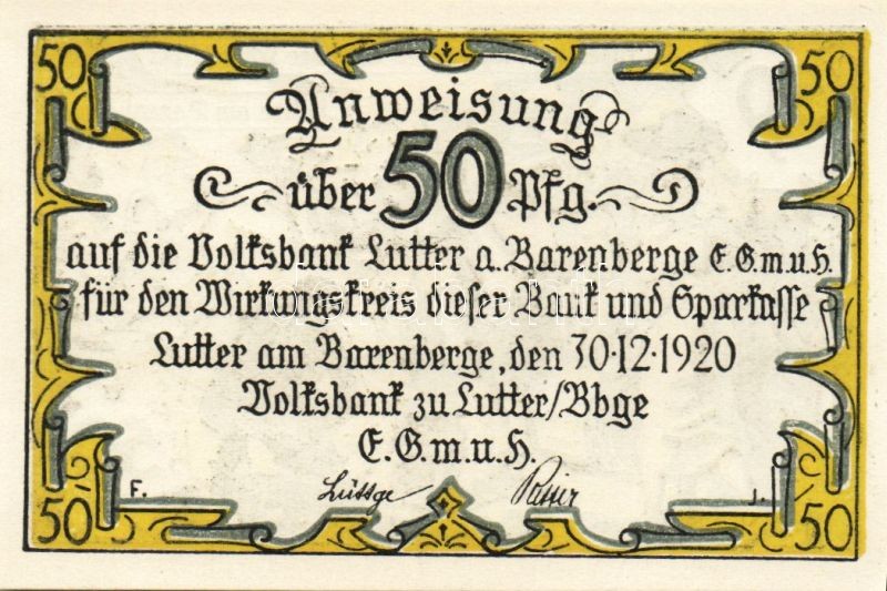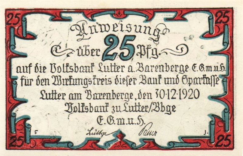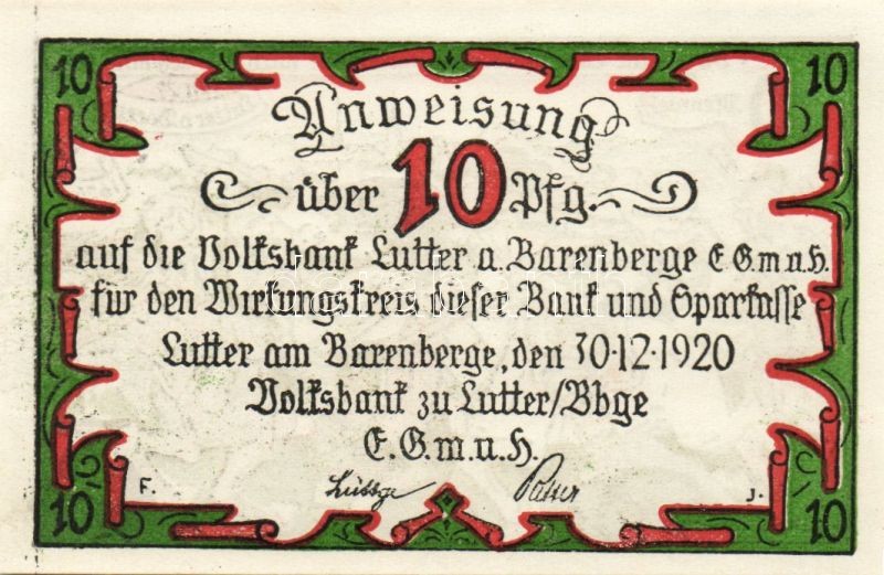 Német Birodalom/Weimari Köztársaság/Lutter am Barenberge 1920. 10Pf, 2... https://www.darabanth.com/de/93-Fernauktion/93.0/Numismatik/~5315/Nemet-BirodalomWeimari-KoztarsasagLutter-am-Barenberge-1920-10Pf-25Pf-50Pf-3klf-db-teljes~II214265