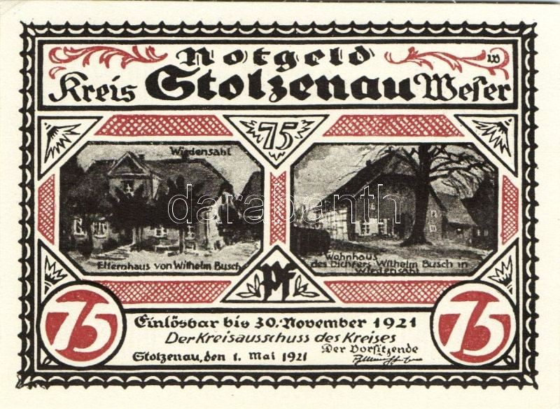 Német Birodalom/Weimari Köztársaság/Stolzenau 1921. 50Pf(5x), 75Pf(2x)... https://www.darabanth.com/de/93-Fernauktion/93.0/Numismatik/~5315/Nemet-BirodalomWeimari-KoztarsasagStolzenau-1921-50Pf5x-75Pf2x-7klf-db-teljes-sor-T1~II214268
