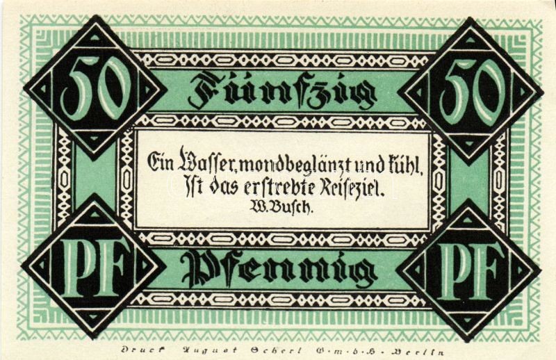 Beschreibung: Német Birodalom/Weimari Köztársaság/Stolzenau 1921. 50Pf(5x), 75Pf(2x). 7klf db, teljes sor T:1/1-