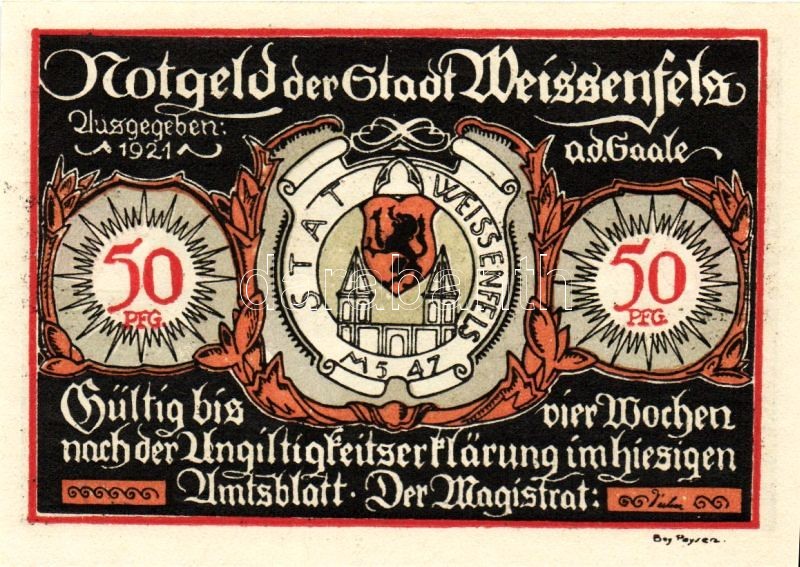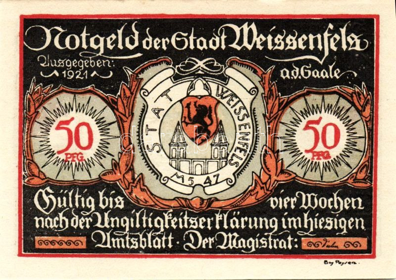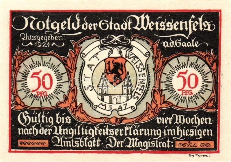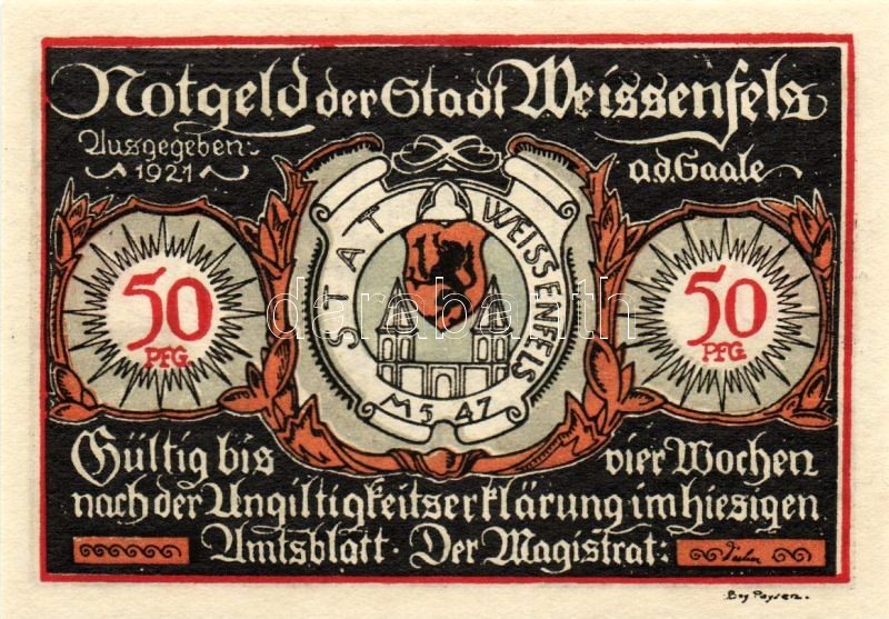 Német Birodalom/Weimari Köztársaság/Weissenfels 1921. 50Pf (6x) mind ... https://www.darabanth.com/de/93-Fernauktion/93.0/Numismatik/~5315/Nemet-BirodalomWeimari-KoztarsasagWeissenfels-1921-50Pf-6x-mind-klf-db-teljes-sor-T1~II214204