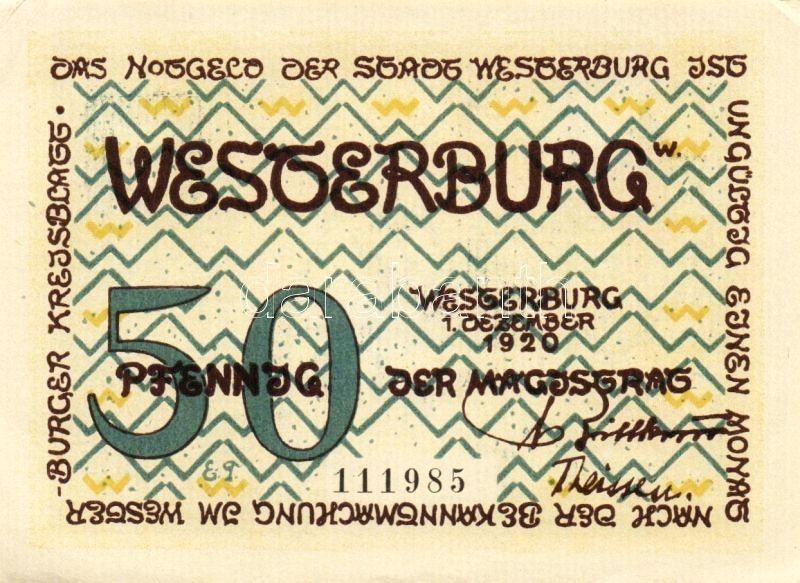 Beschreibung: Német Birodalom/Weimari Köztársaság/Westerburg 1920. 50Pf(3x) mind klf db, teljes sor T:1/1-