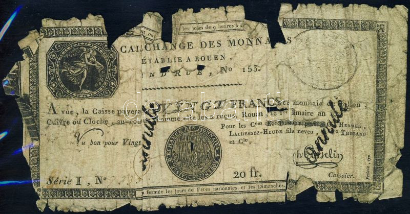 Beschreibung: Franciaország / Rouen 1797-1803. 20Fr T:IV- R!