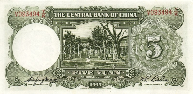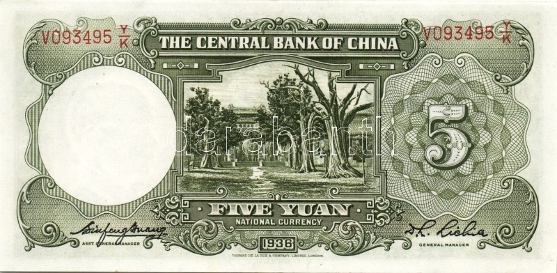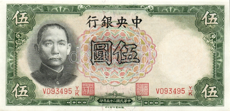 Kína/Köztársaság/Central Bank 1936. 5Y (2x) egymásutáni sorszámmal T:I https://www.darabanth.com/de/93-Fernauktion/93.0/Numismatik/~5316/KinaKoztarsasagCentral-Bank-1936-5Y-2x-egymasutani-sorszammal-TI~II212974