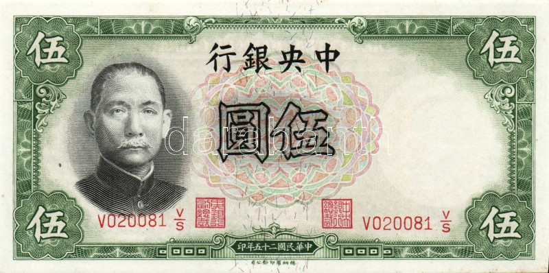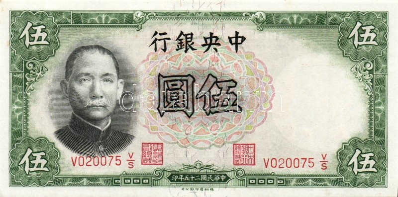 Kína/Köztársaság/Central Bank 1936. 5Y (2x) egymásutáni sorszámmal T:I https://www.darabanth.com/de/93-Fernauktion/93.0/Numismatik/~5316/KinaKoztarsasagCentral-Bank-1936-5Y-2x-egymasutani-sorszammal-TI~II212975