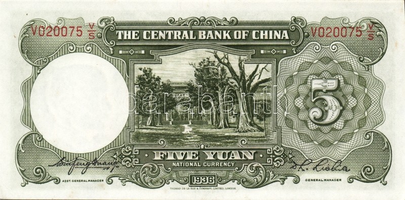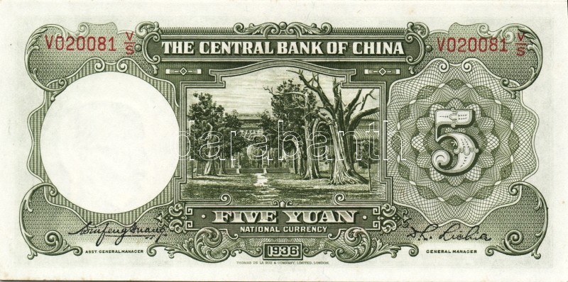Beschreibung: Kína/Köztársaság/Central Bank 1936. 5Y (2x) egymásutáni sorszámmal T:I