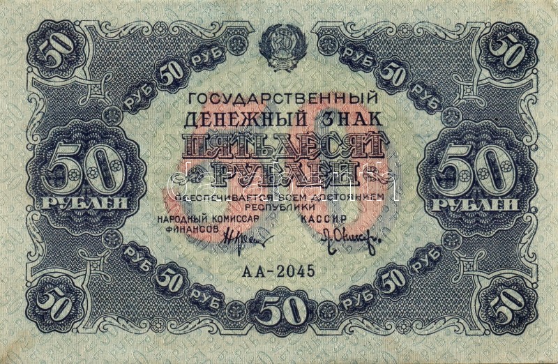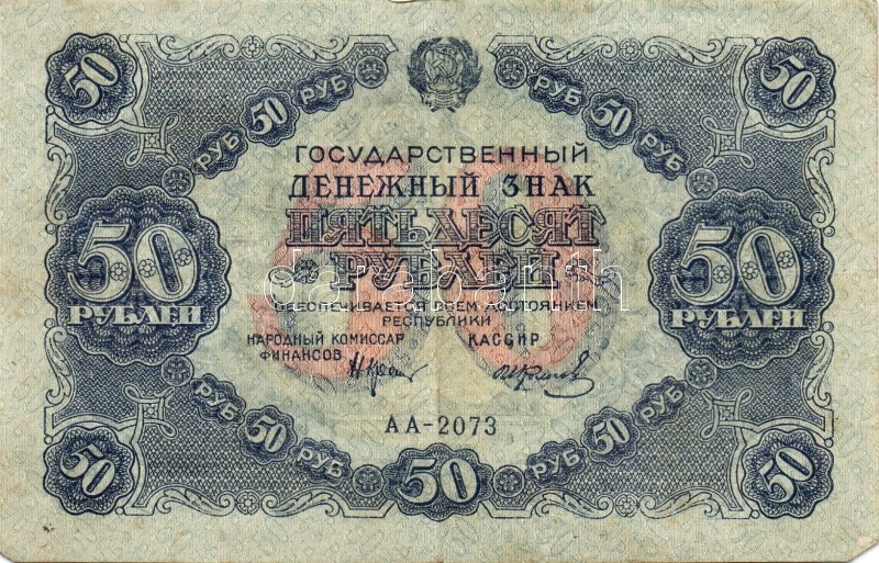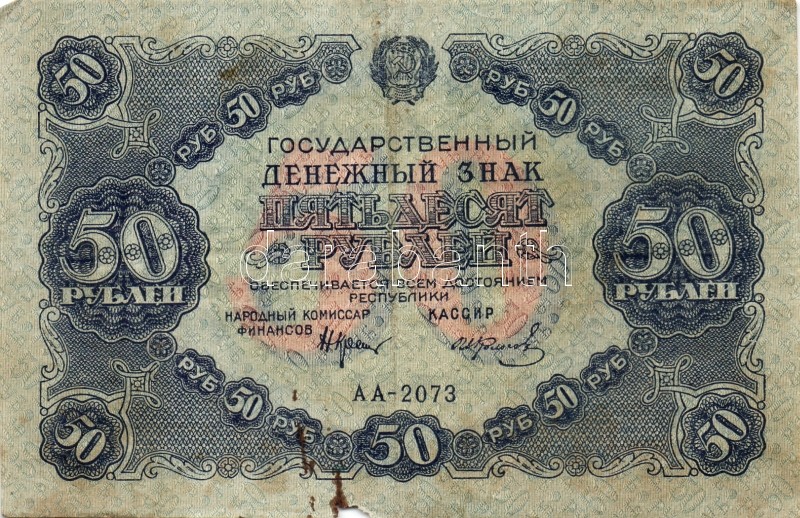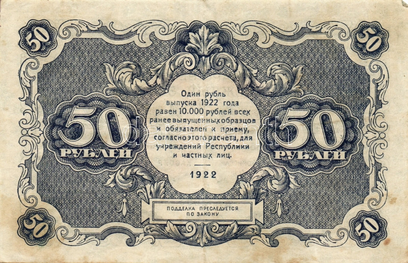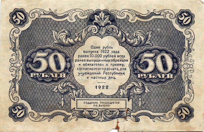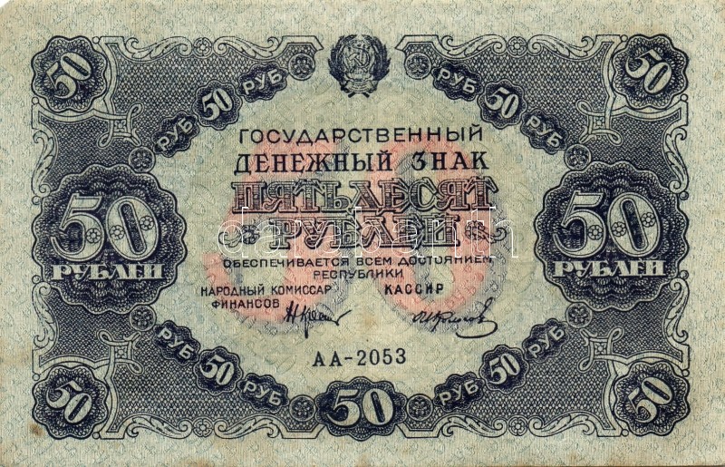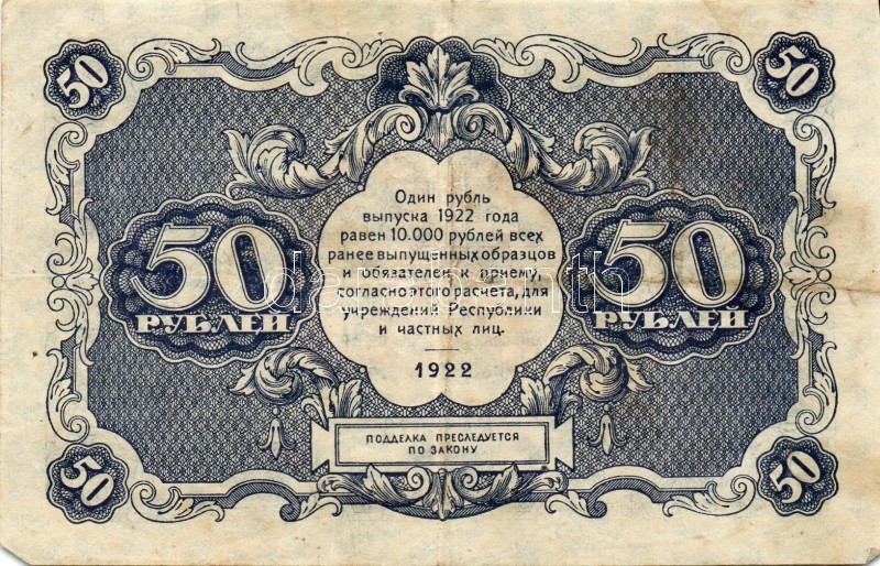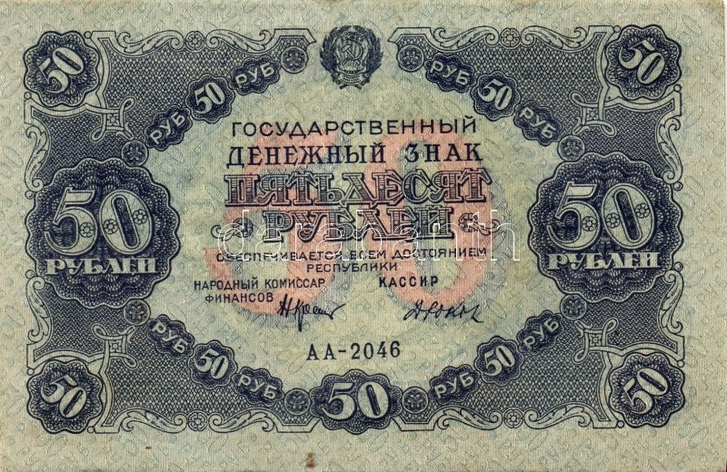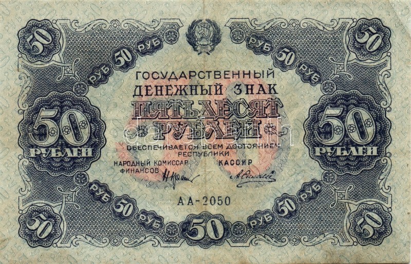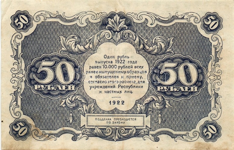 Oroszország SZ.F.SZ.R. 1922. 50R(6x) 4klf aláírás variánssal! T:II,II/... https://www.darabanth.com/de/93-Fernauktion/93.0/Numismatik/~5316/Oroszorszag-SZFSZR-1922-50R6x-4klf-alairas-varianssal-TII-IIIII-III~II212826