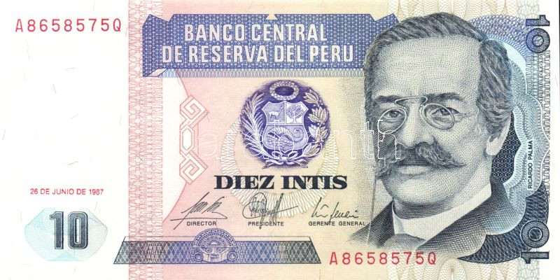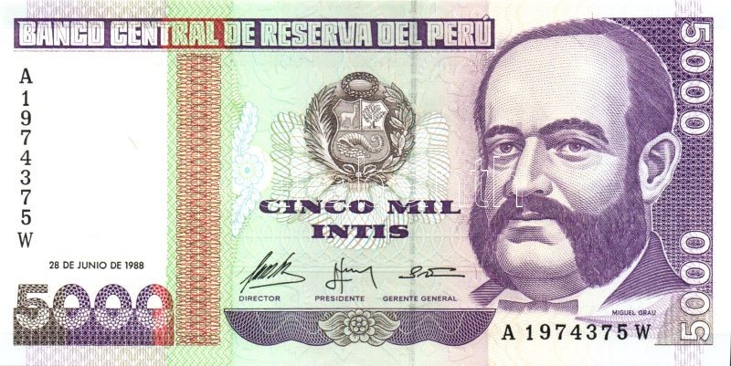 Peru 1985.6.21. 5000S + 1987.6.26. 10I, 50I, 100I, 500I + 1988.6.28. 1... https://www.darabanth.com/de/93-Fernauktion/93.0/Numismatik/~5316/Peru-1985621-5000S-plus-1987626-10I-50I-100I-500I-plus-1988628-1000I-5000I-TI-Osszesen-7db-~II214153