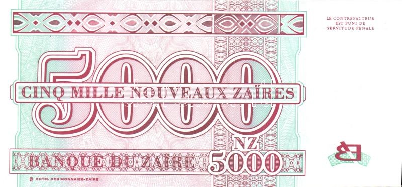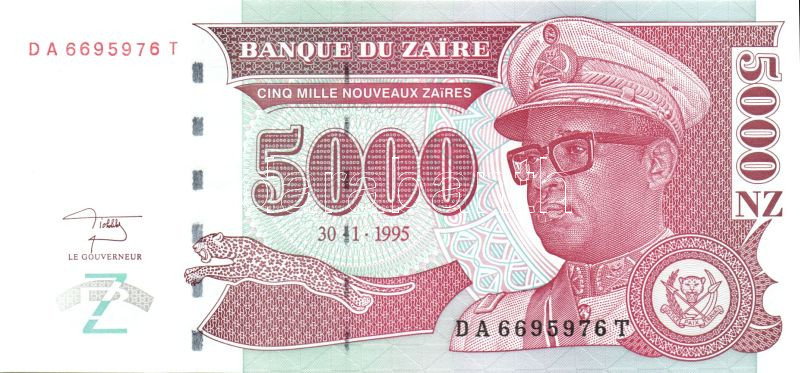 Zaire 1995.1.30. 5000NZ T:I https://www.darabanth.com/de/93-Fernauktion/93.0/Numismatik/~5316/Zaire-1995130-5000NZ-TI~II214151