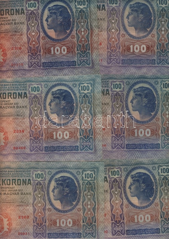 1912. 100K(12x) piros "Deutschösterreich" fny-sal T:II+ https://www.darabanth.com/de/93-Fernauktion/93.0/Numismatik/~5317/1912-100K12x-piros-Deutschosterreich-fny-sal-TIIplus~II209016