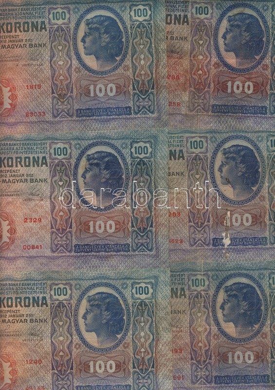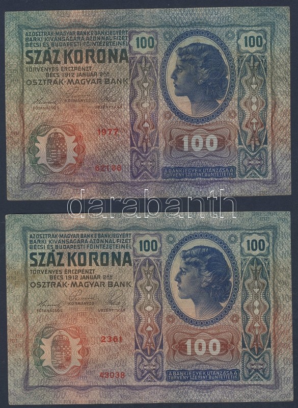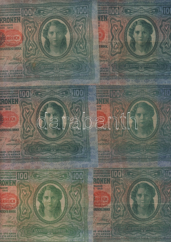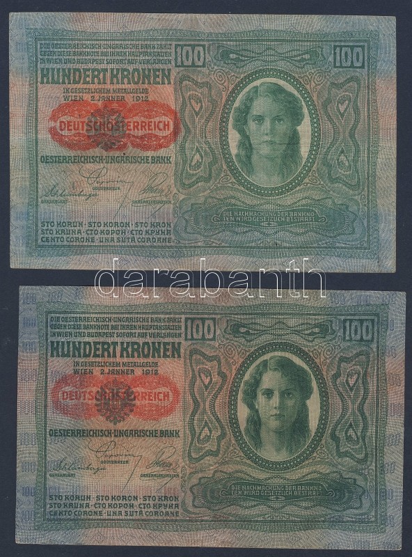 1912. 100K(20x) piros "Deutschösterreich" fny-sal T:II,II- https://www.darabanth.com/de/93-Fernauktion/93.0/Numismatik/~5317/1912-100K20x-piros-Deutschosterreich-fny-sal-TII-II-~II209013