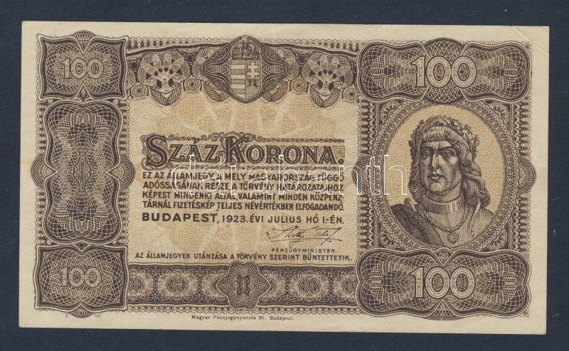 Beschreibung: 1923. 100K "Magyar Pénzjegy..." T:II