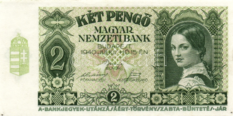 1940. 1P alsó szélen 2 festékpont T:II- https://www.darabanth.com/de/93-Fernauktion/93.0/Numismatik/~5317/1940-1P-also-szelen-2-festekpont-TII-~II212829