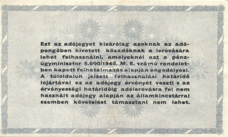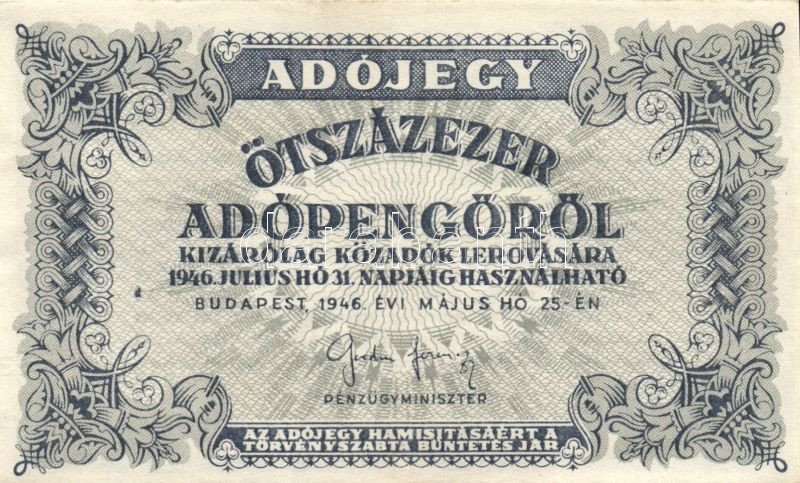 Beschreibung: 1946. 500.000AP előlapon kék festékfolttal + kis papírránccal T:I