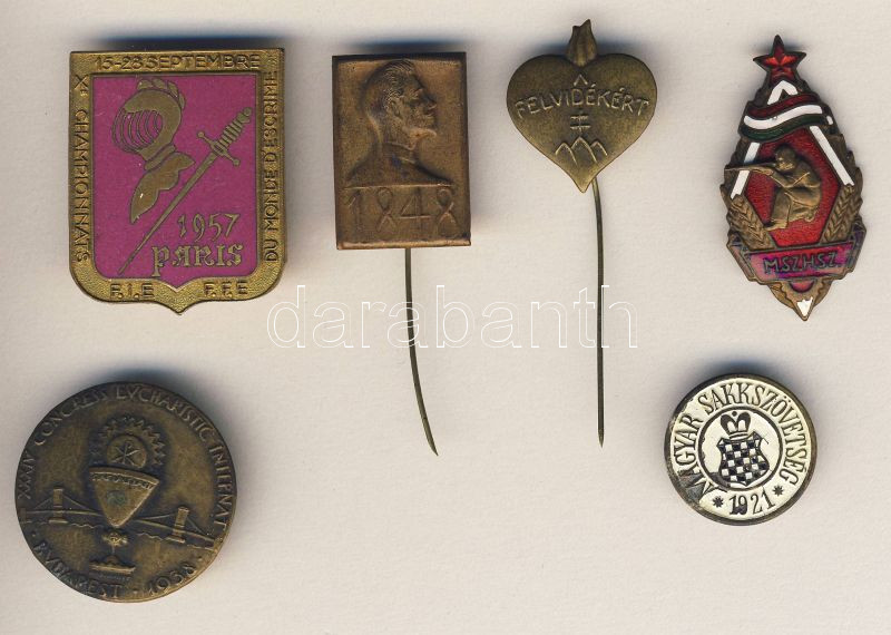 1921-1957. 5 klf kitűző, benne irredenta,sakk,Petőfi (2db zománcos) + ... https://www.darabanth.com/de/93-Fernauktion/93.0/Numismatik/~5318/1921-1957-5-klf-kituzo-benne-irredenta-sakk-Petofi-2db-zomancos-plus-francia-zomancos-sport-T~II213879