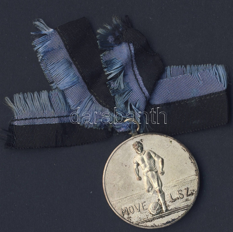 1926. "MOVE L.SZ." labdarúgó fém díjérem szalaggal T:2 https://www.darabanth.com/de/93-Fernauktion/93.0/Numismatik/~5318/1926-MOVE-LSZ-labdarugo-fem-dijerem-szalaggal-T2~II209697