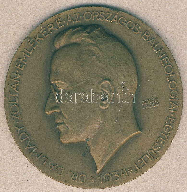 1934. "Dr. Dalmady Zoltán-Országos Balneológiai Egyesület" nagylakú Br... https://www.darabanth.com/de/93-Fernauktion/93.0/Numismatik/~5318/1934-Dr-Dalmady-Zoltan-Orszagos-Balneologiai-Egyesulet-nagylaku-Br-emlekplakett-SzignBer~II211540