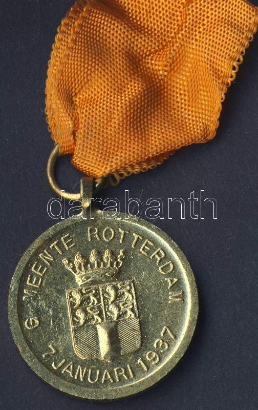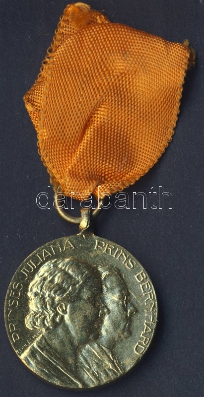 Beschreibung: Hollandia 1937. "Julianna hercegnő és Bernhard herceg" esküvője alkalmából kiadott aranyozott Br emlékérem szalaggal T:2