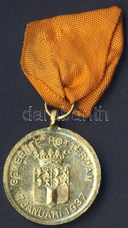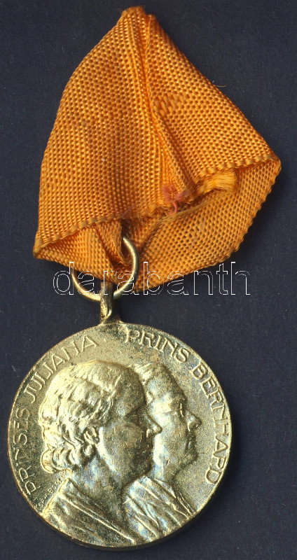 Beschreibung: Hollandia 1937. "Julianna hercegnő és Bernhard herceg" esküvője alkalmából kiadott aranyozott Br emlékérem szalaggal T:2