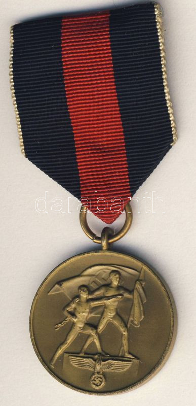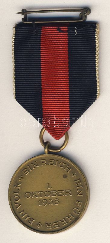 Beschreibung: Német 3. Birodalom 1938. "Sudetenland - csatlakozás", szalaggal, T:2 kis ph.