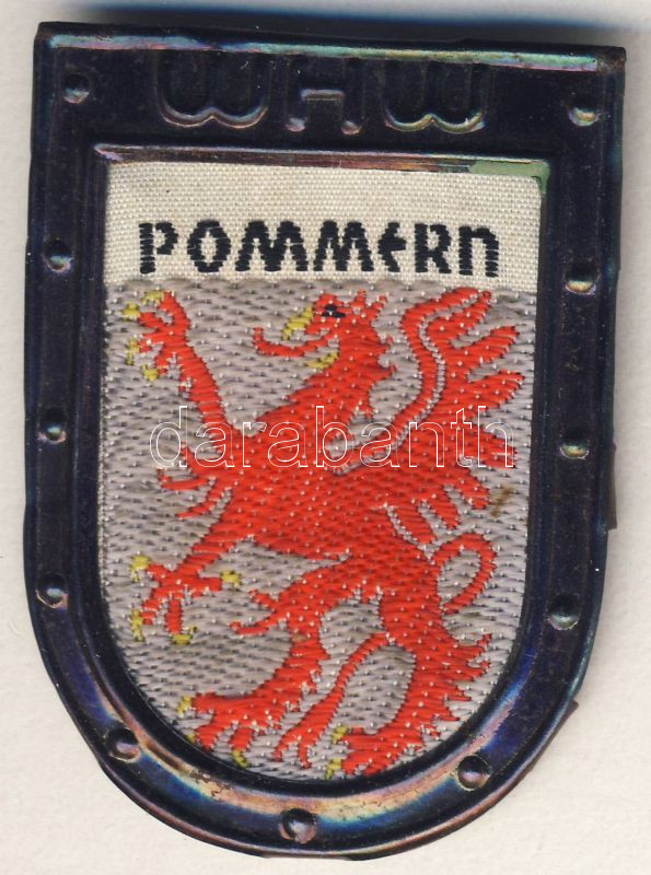Beschreibung: Német 3. Birodalom 1940-es évek "W.H.W. - Pommern (Téli Segély Szolgálat) fém-szövet kitűző