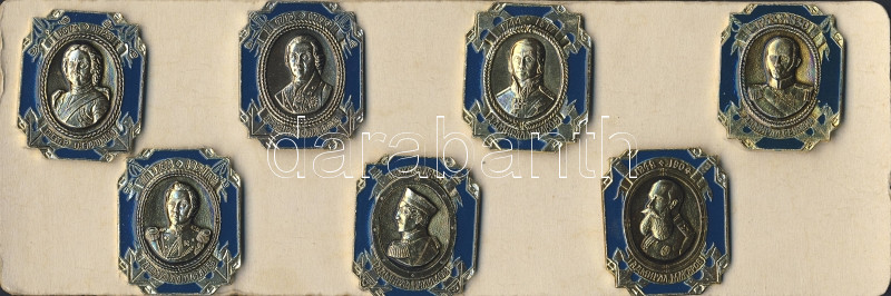 Beschreibung: Oroszország DN "Az orosz flotta nagyjai" 7db klf dekoratív, aranyozott, zománcozott kitűző T:1