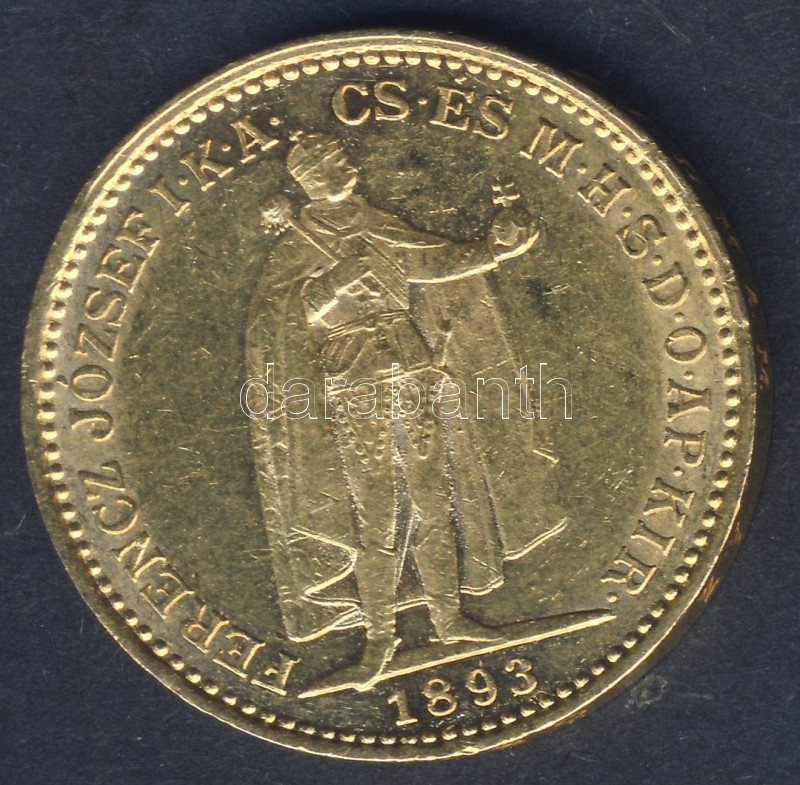 1893. 20K Au 6,775g "kiskirály"! T:2/3+ R! https://www.darabanth.com/de/93-Fernauktion/93.0/Numismatik/~5321/1893-20K-Au-6-775g-kiskiraly-T23plus-R~II208627