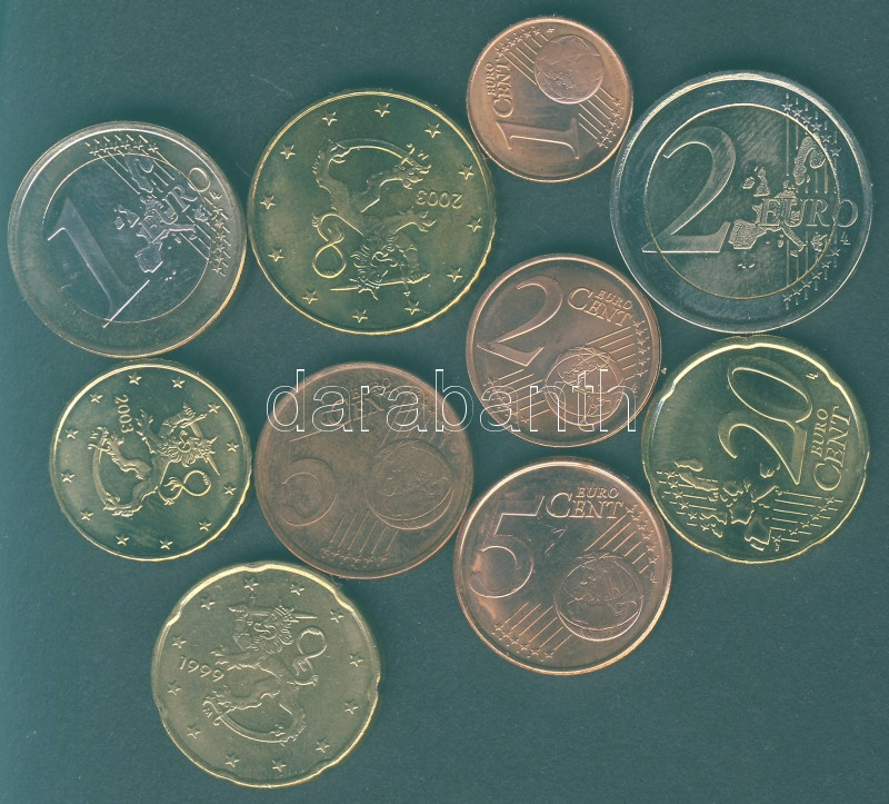Finnország 1999-2003. 1c, 2c, 5c (2x), 10c, 20c (2x), 50c, 1€, 2€, benne egy vegyes évszámú sor, jobb évszámokkal T:1,2+