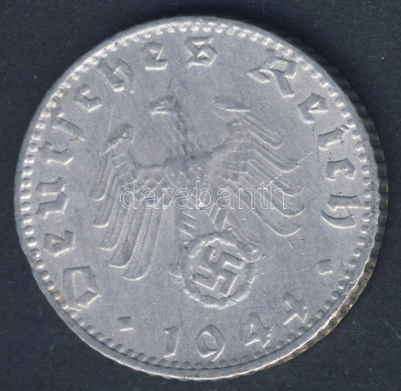 Német 3. Birodalom 1944G 50Pf Alu h.k.-tel T:3 RR!! https://www.darabanth.com/de/93-Fernauktion/93.0/Numismatik/~5323/Nemet-3-Birodalom-1944G-50Pf-Alu-hk-tel-T3-RR~II212803