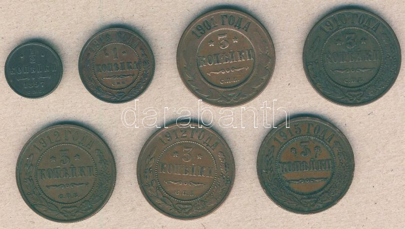 Beschreibung: Oroszország 1897-1915. 1/2k (1x), 1k (1x), 3k (5x) 4klf évszámmal T:3