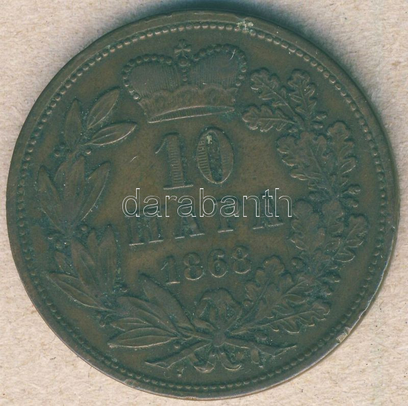 Szerbia 1868. 10P III.Mihály T:3 https://www.darabanth.com/de/93-Fernauktion/93.0/Numismatik/~5323/Szerbia-1868-10P-IIIMihaly-T3~II212478