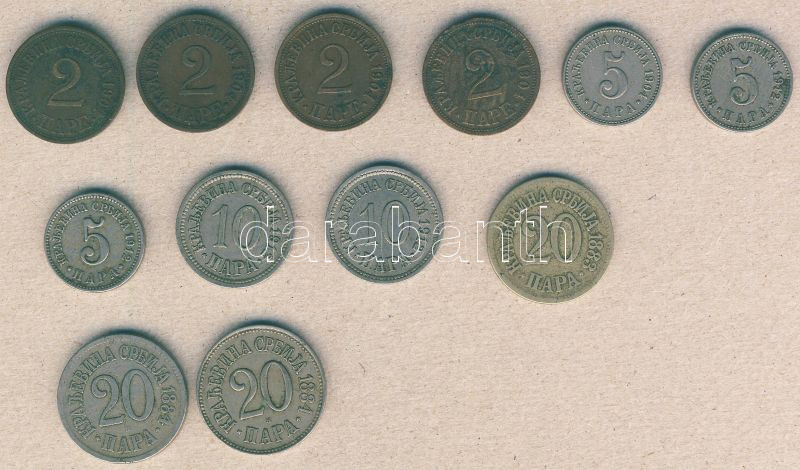 Beschreibung: Szerbia 1883-1912. 2P (4x), 5P (3x), 10P (2x), 20P (3x) T:3 Összesen 12db!