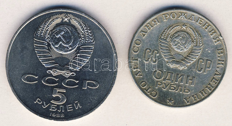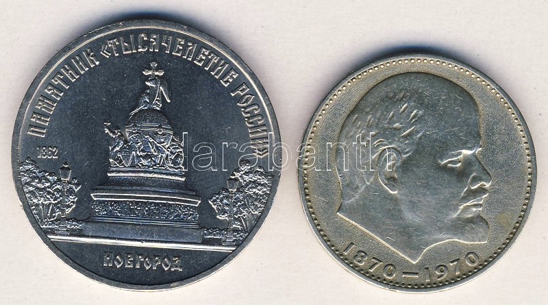 Szovjetunió 1970. 1R "Lenin" T:3 kis ph. + 1988. 5R "Novgorod" T:2 https://www.darabanth.com/de/93-Fernauktion/93.0/Numismatik/~5323/Szovjetunio-1970-1R-Lenin-T3-kis-ph-plus-1988-5R-Novgorod-T2~II205502