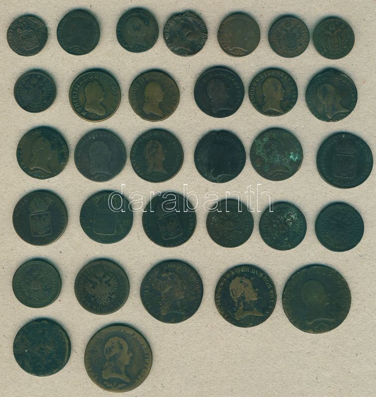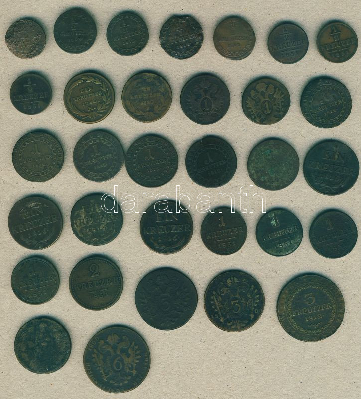 Ausztria/magyar verdejel 1780-1851. 1/4Kr (1x), 1/2Kr (7x) 2klf, 1Kr (... https://www.darabanth.com/de/93-Fernauktion/93.0/Numismatik/~5324/Ausztriamagyar-verdejel-1780-1851-14Kr-1x-12Kr-7x-2klf-1Kr-18x-5klf-2Kr-1x-3Kr-3x-~II210967
