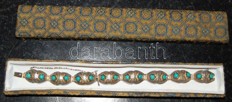 Beschreibung: Dekoratív áttört, ezüst női karlánc, türkiz kövekkel, Ag 20g, díszdobozban