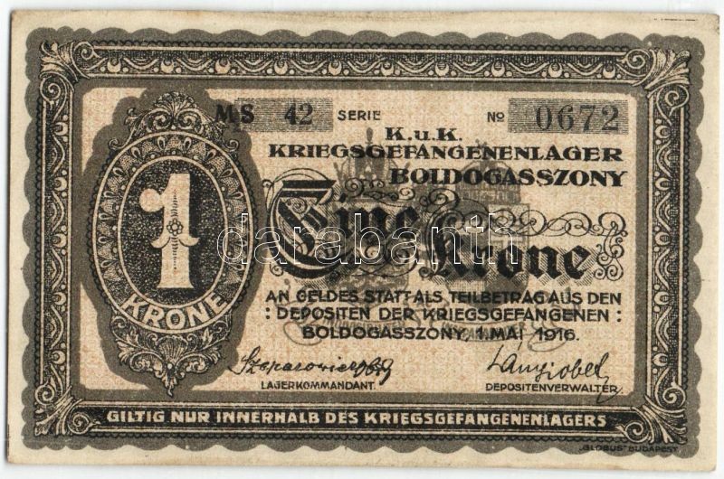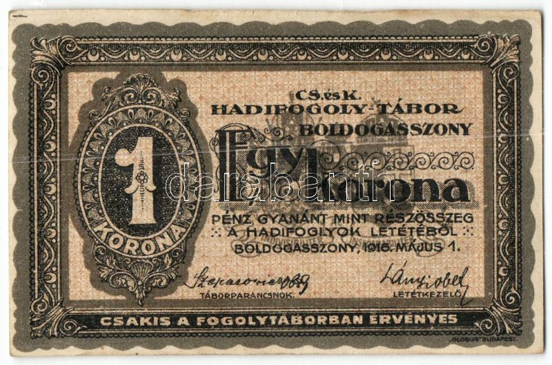 Boldogasszony/hadifogolytábor 1916. 1K "MS" (Museum Serie) jelzéssel T... https://www.darabanth.com/de/94-Fernauktion/94.0/Numismatik/~272/Boldogasszonyhadifogolytabor-1916-1K-MS-Museum-Serie-jelzessel-TI~II216308