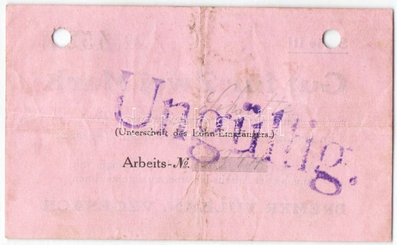 Beschreibung: Német Birodalom/Császárság/Vegesack/Bremer Vulkan 1914.9.5. 2M hivatalos érvénytelenítéssel T:II
