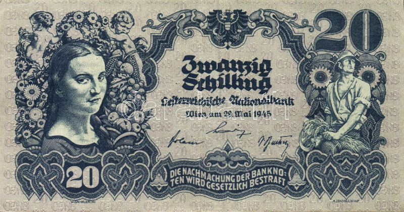Ausztria 1945. 20Sch T:II+ https://www.darabanth.com/de/94-Fernauktion/94.0/Numismatik/~275/Ausztria-1945-20Sch-TIIplus~II216292