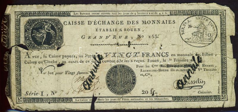 Franciaország / Rouen 1797-1803. 20Fr T:IV- R! https://www.darabanth.com/de/94-Fernauktion/94.0/Numismatik/~275/Franciaorszag-Rouen-1797-1803-20Fr-TIV-R~II187708