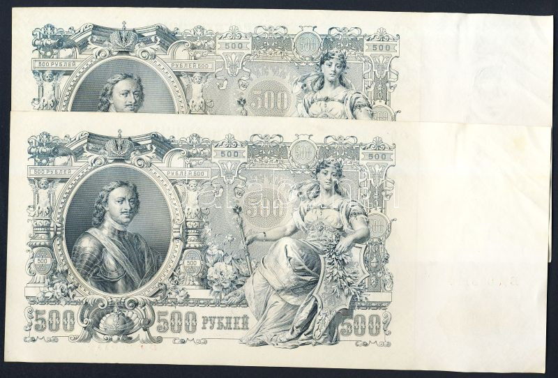 Oroszország 1912. 500R(3x) egymásutáni sorszámokkal T:I,I- https://www.darabanth.com/de/94-Fernauktion/94.0/Numismatik/~275/Oroszorszag-1912-500R3x-egymasutani-sorszamokkal-TI-I-~II216549