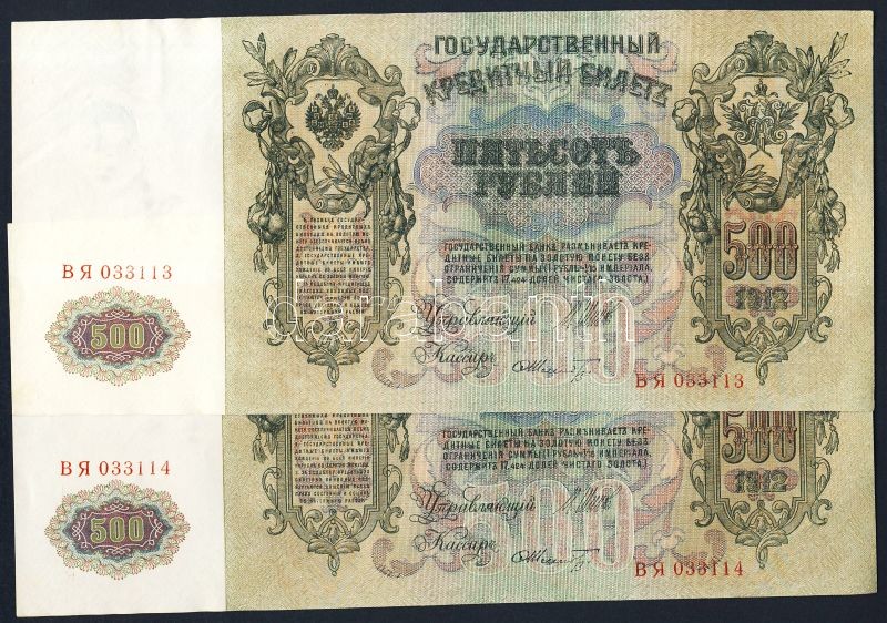 Beschreibung: Oroszország 1912. 500R(3x) egymásutáni sorszámokkal T:I,I-